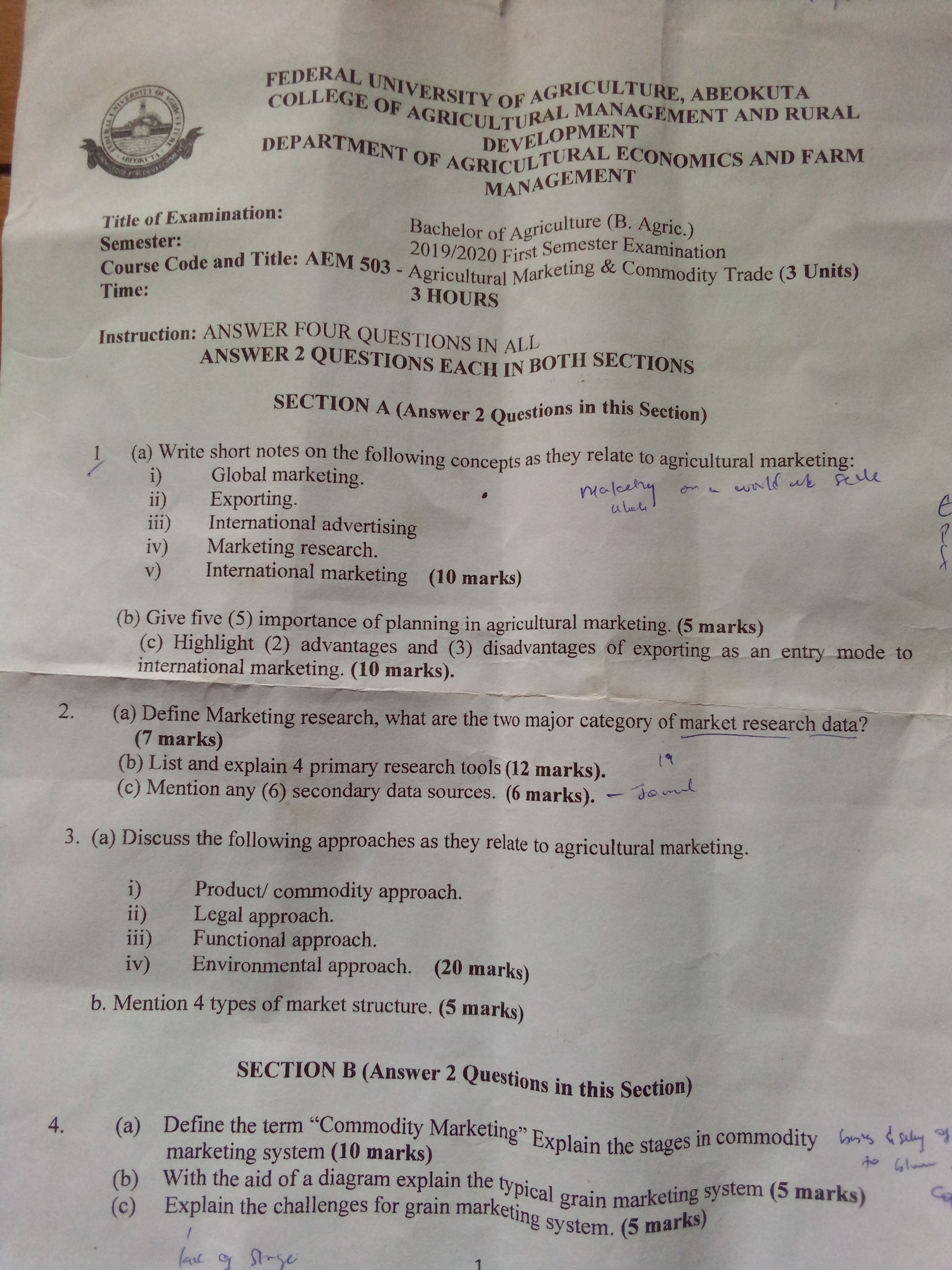 agricultural economics and farm management 2019/2020 aem-503(-agricultural-marketing-and-commodity-trade.