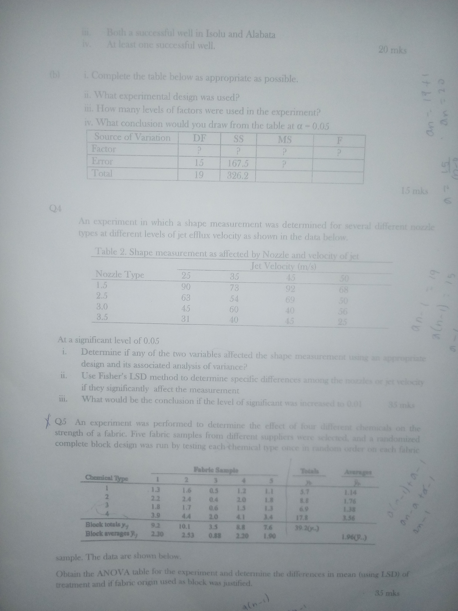 (ii) Use Fisher's LSD method to determine specific differences among the nozzles or jet velocity if they significantly affect the measurement